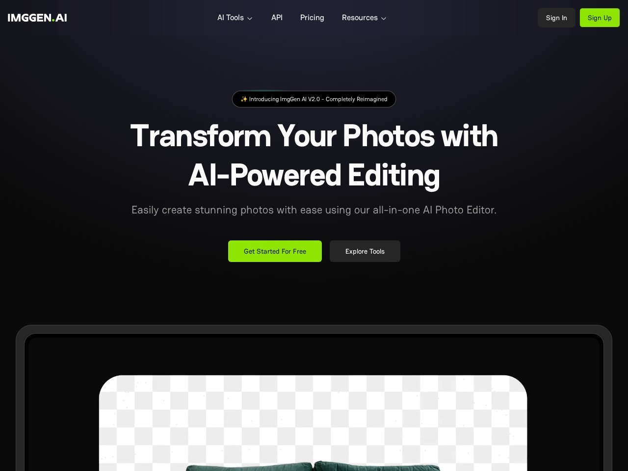 imggen.ai/tools 是一个提供多种AI驱动的照片编辑工具的平台,操作简单,能让用户在几秒内创作出精美的视觉作品,涵盖图像生成、修复、增强等多种功能。