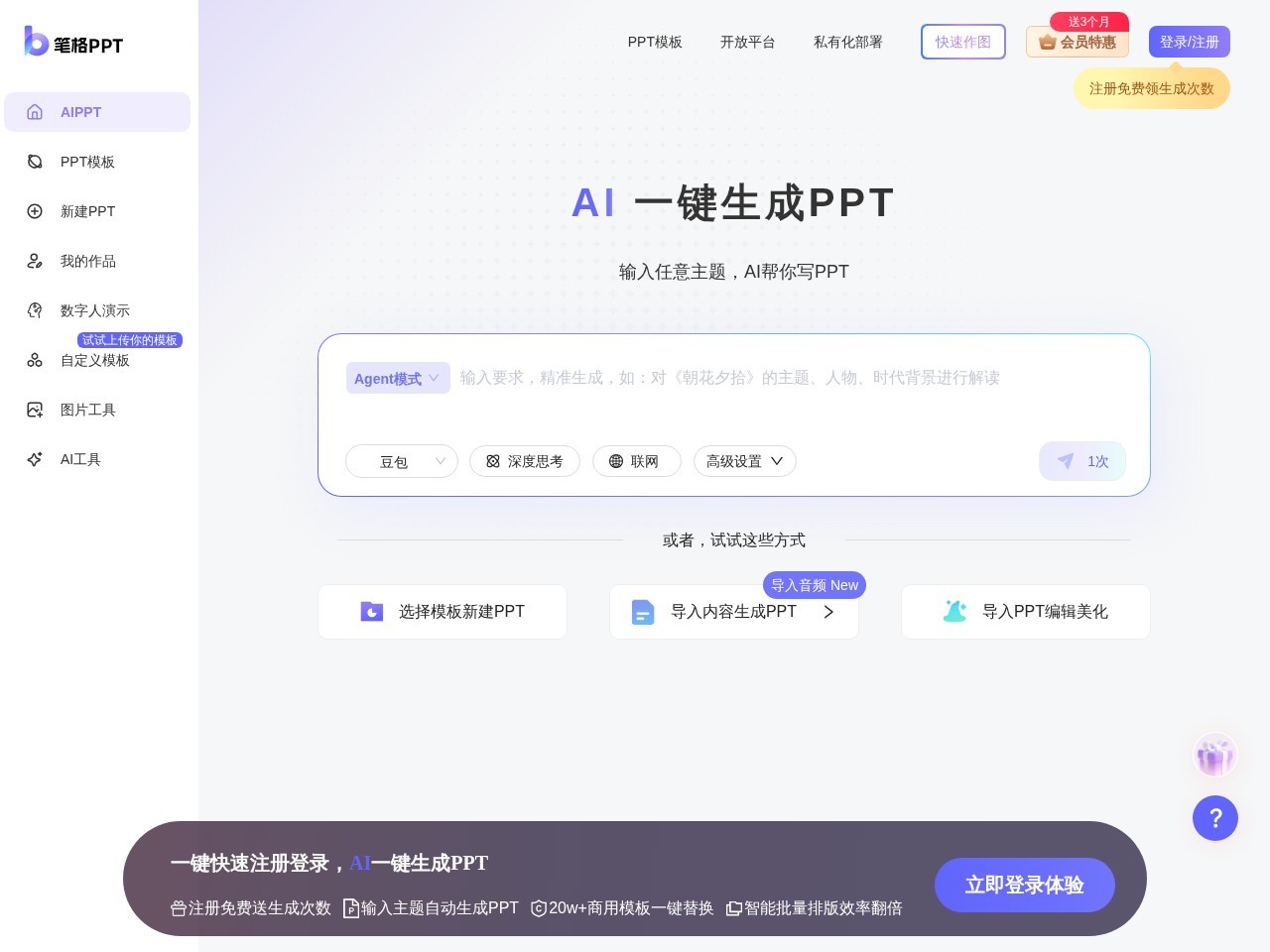 笔格PPT是一款AI一键生成PPT工具,能帮助用户轻松解决PPT制作难题,通过智能化制作过程提升效率,适用于多种场景的演示文稿创作。