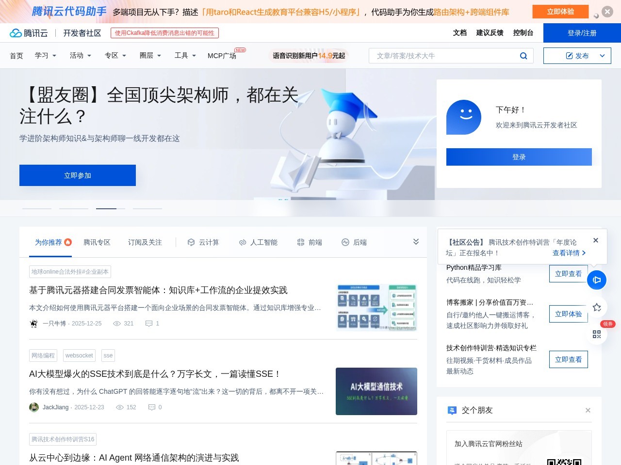 这是腾讯云开发者社区的专栏板块,聚焦技术内容分享,涵盖国密算法实践、AI工具开发、低代码技术、算法应用等多领域技术文章。